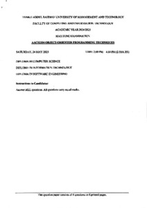 Tunku Abdul Rahman University of Management and Technology, Faculty of Computing and Information Technology (2025) AACS2204 Object-Oriented Programming Techniques (Academic Year 2024/2025, May/June Examination). Past Year Question Paper (Unpublished)