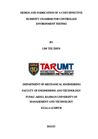 Lim, Tze Zhen (2025) Design and Fabrication of a Cost-Effective Humidity Chamber for Controlled Environment Testing. Final Year Project (Diploma), Tunku Abdul Rahman University of Management and Technology.